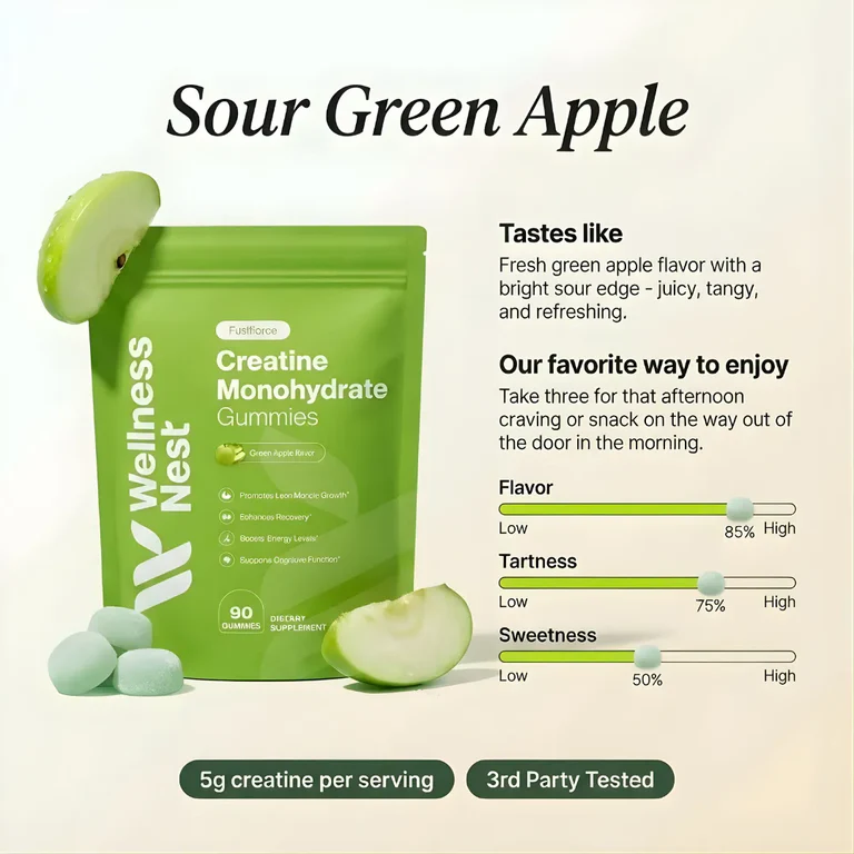 Wellness Nest Creatine Gummies – Green Apple [90 Gummies]