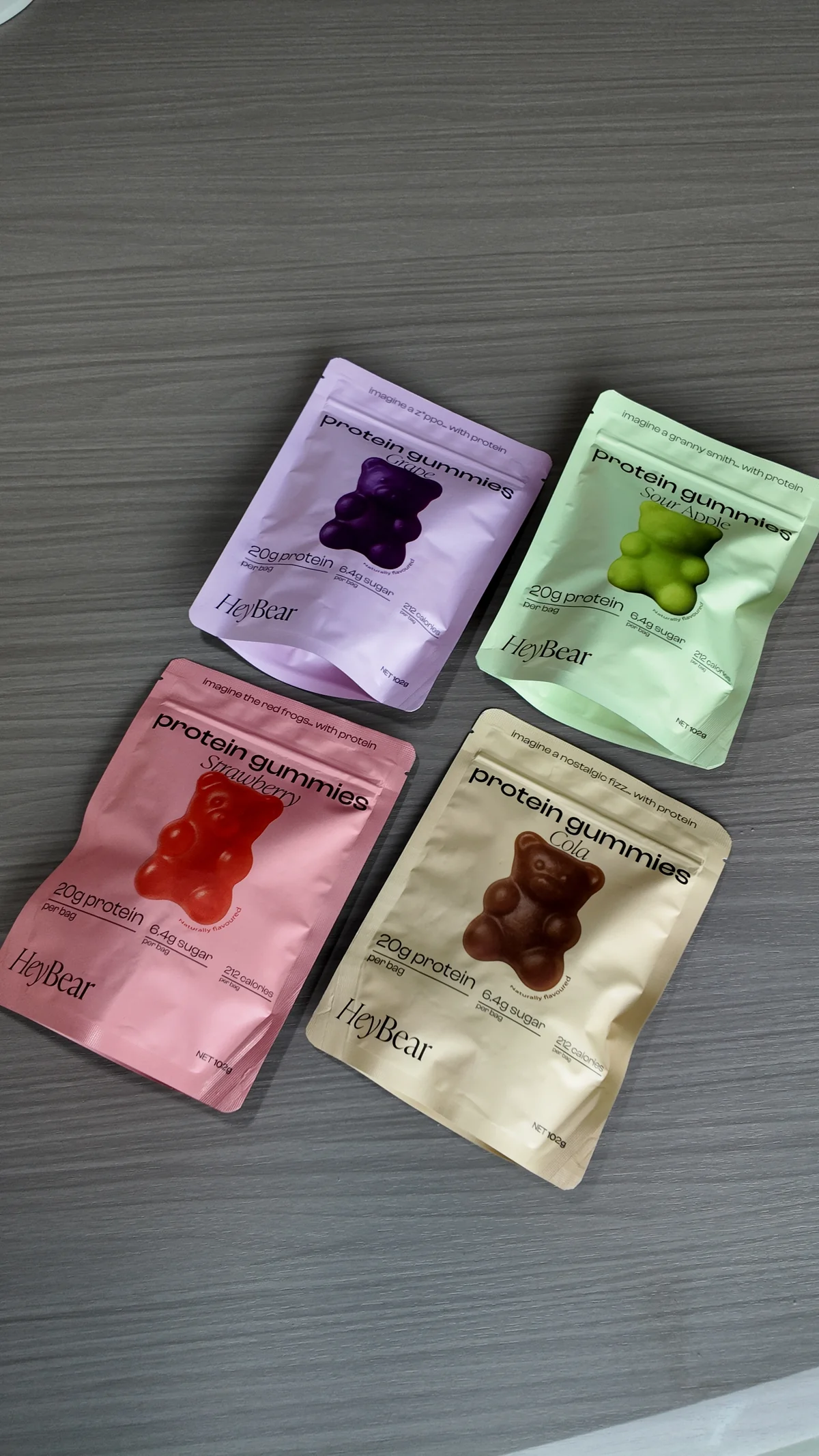 Hey Bear protein gummies come in several mouth-watering flavours that make protein snacking enjoyable: